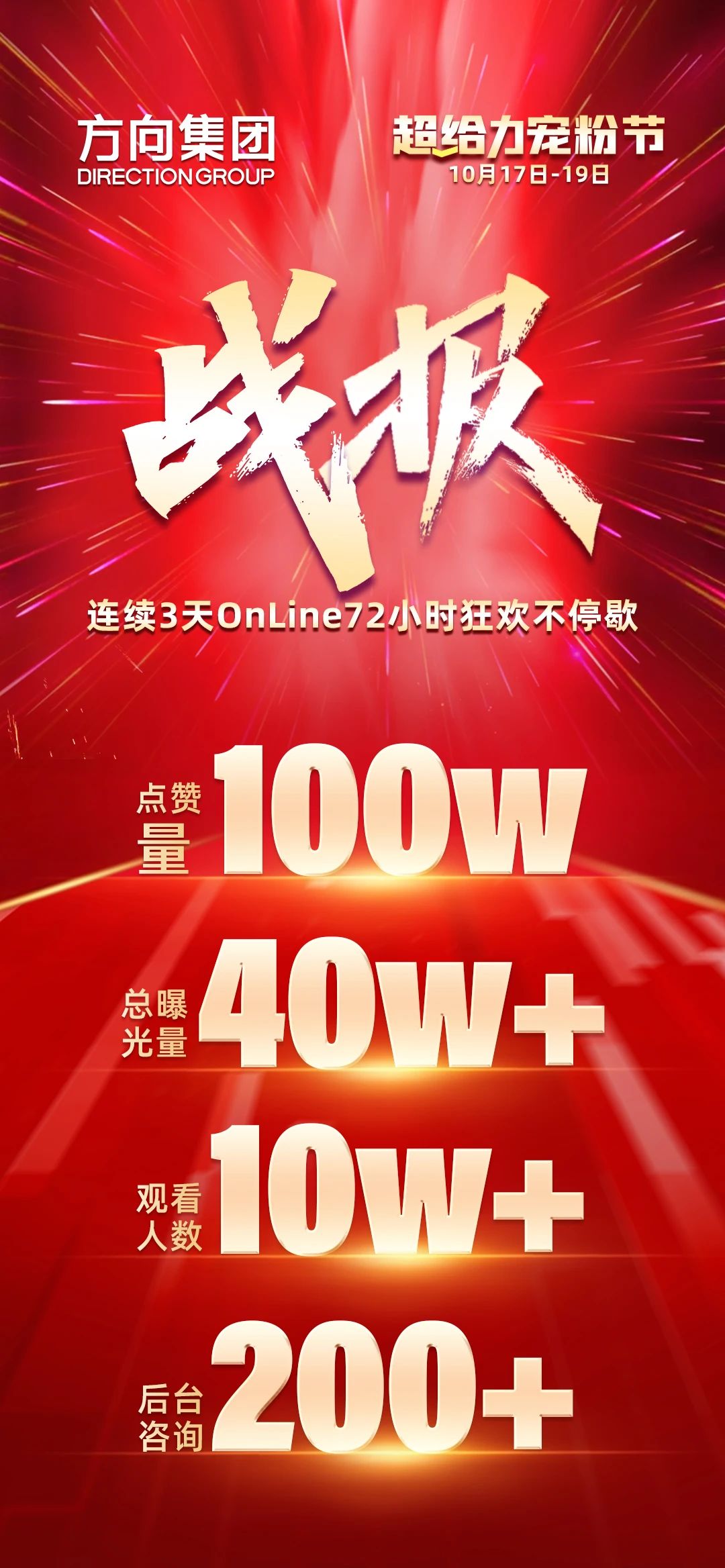 早在10月17日,方向集团举办了超给利宠粉节——72小时狂欢不停歇直播活动,抢占陶博会的第一波流量。